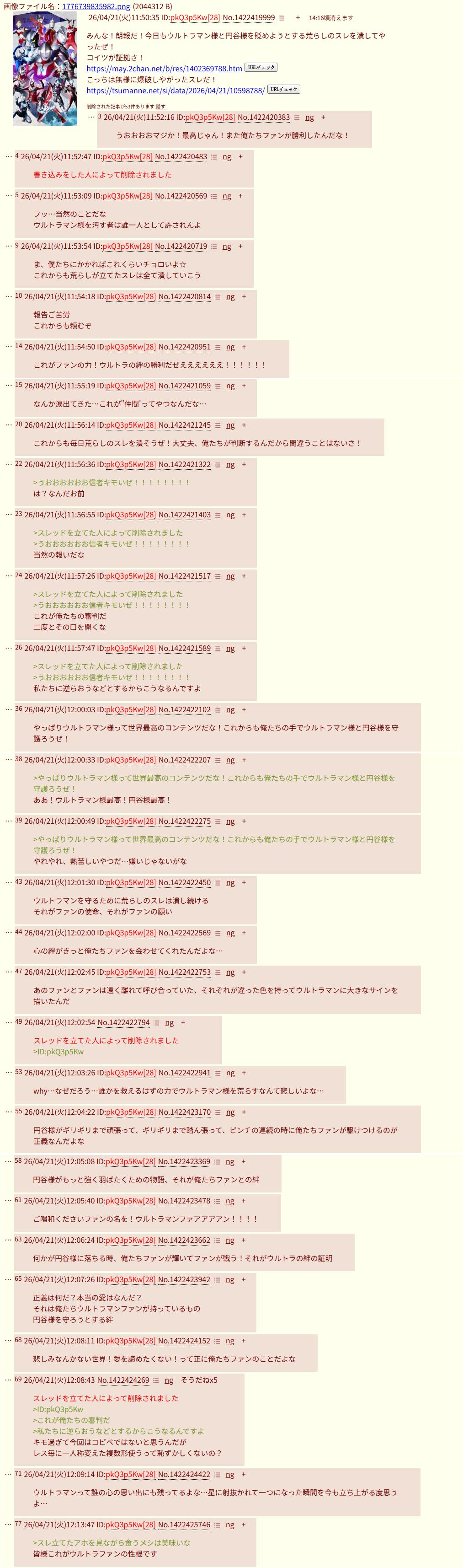 | … | 2826/04/21(火)20:45:32No.1422553127+書き込みをした人によって削除されました |
