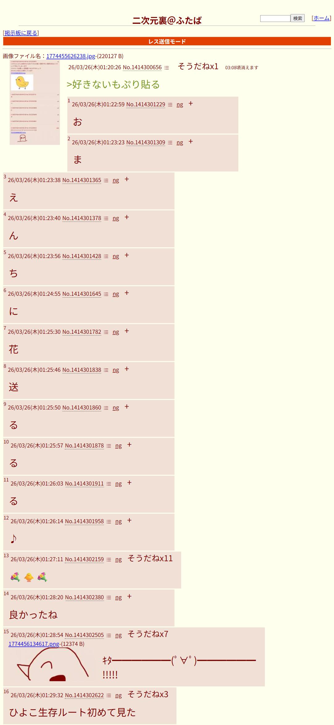 今日こそひよこさんを幸せにしたいこのスレは古いので、もうすぐ消えます。