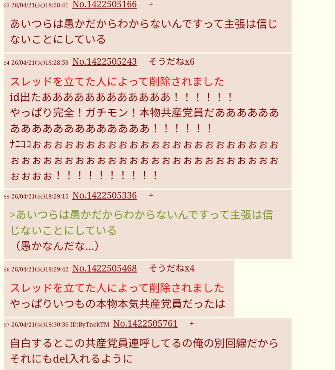 | … | 12326/04/21(火)22:16:11No.1422590498そうだねx6人生逆転ワンチャンかけてimgでオルグ活動に熱上げてる共産党員だぞ |