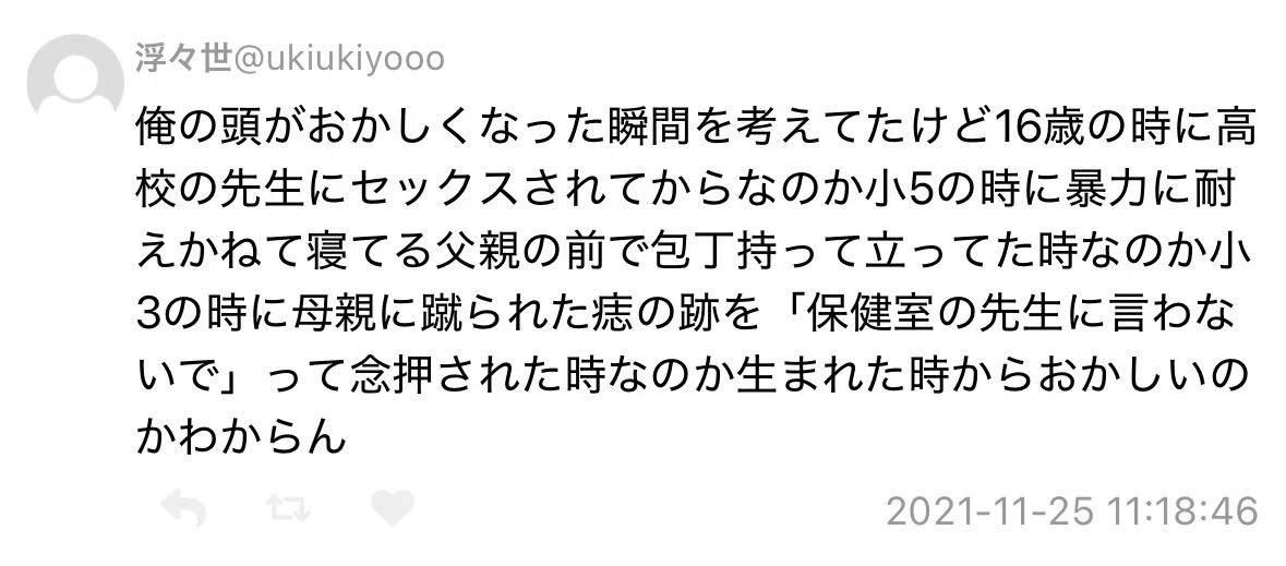 | … | 8026/04/22(水)09:30:29No.1422683958そうだねx1「私は、15歳のときに先生に声をかけられ、16歳のときから先生の性欲のはけ口にされました。性的虐待を受け続け、精神的におかしくなってしまいました。あれからずっと“苦しい、死にたい”と思ってきました」 |