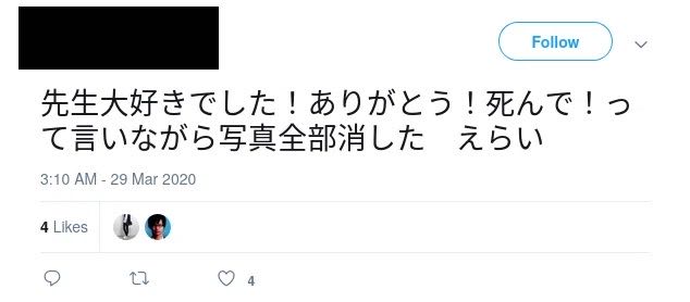| … | 7726/04/22(水)09:28:22No.1422683575+というのも別れた後も女性は山本章一への悪感情は抱いておらず |