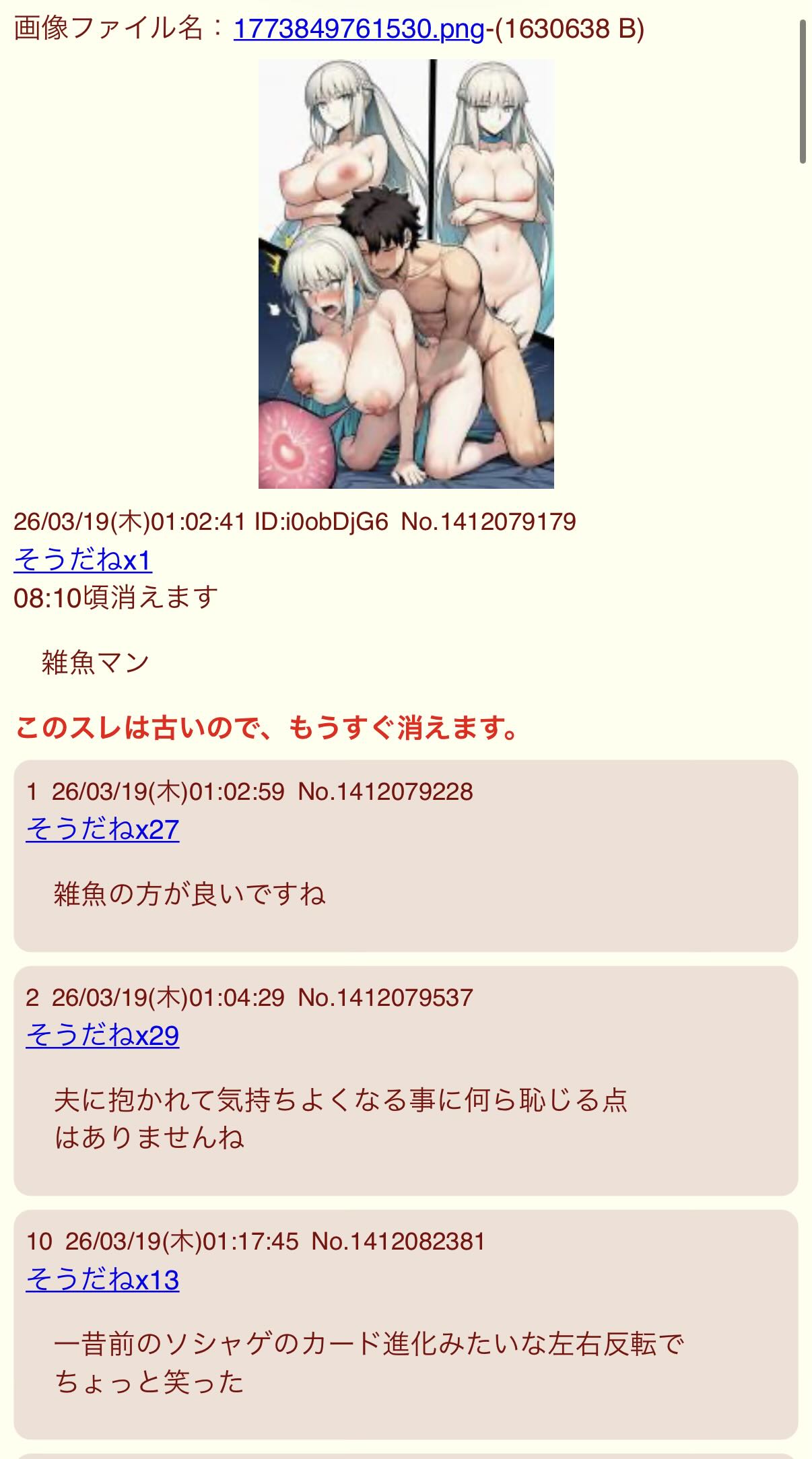 | … | 9426/04/22(水)13:38:31No.1422739999+TSワカメのスレ何度も再放送してるやべーやつがいる |