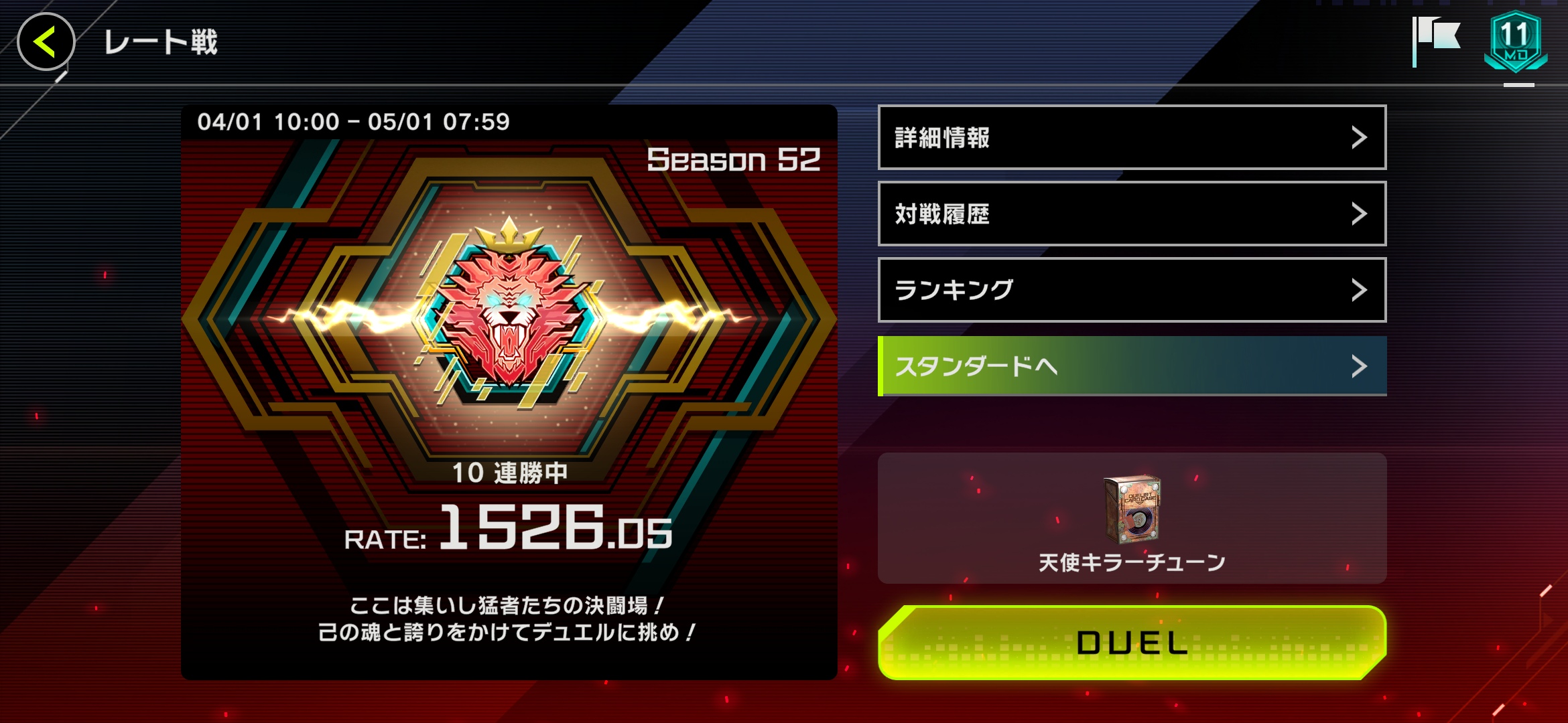 ルール:1卓のみでデュエルし着席は早い者勝ち 負けた方が残留 5連敗でやめる権利を得るが本人にやる気があれば続けて良い