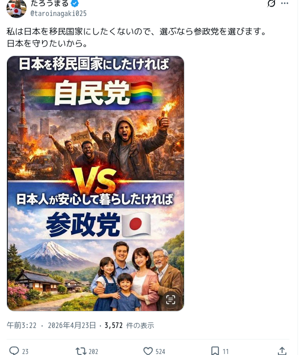 | … | 2626/04/23(木)15:39:57 ID:V6d27C6.No.1423059498+排外主義者は前までは左派を攻撃してたんだが最近は自民を一番の敵として攻撃しだしたな |