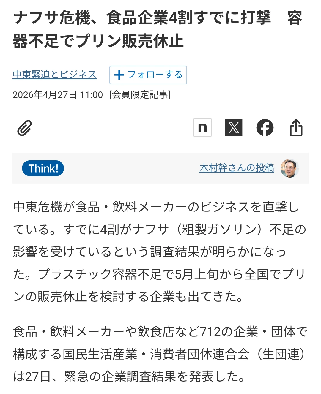 ナフサ足りなくね?
