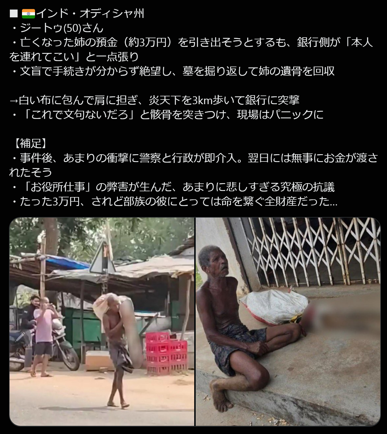 | … | 9526/04/30(木)14:36:20No.1425273490+インドぐらい上と下の状態が違うとこういう事も起きるんだなあ |